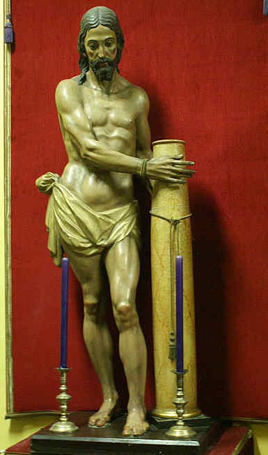 ,En la Sacristia se puede contemplar el Cristo de 1602 de Amaro Vázquez , es una escultura de 1.65 policromada y que a lo largo de su historia sufrió diferentes restauraciones y modificaciones. Curiosamente procesión entre 1602 y 1891 y en una segunda etapa desde 1938 a 1072 que fue sustituido por el actual de Buiza .-