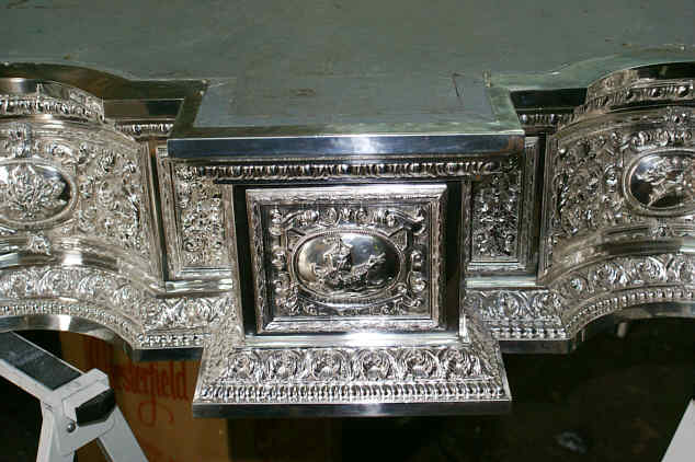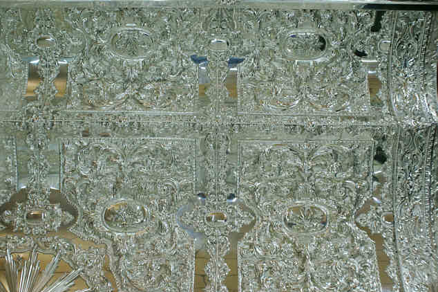 23 de Abril de 2008Ayer tuve la oportunidad de visitar el taller de los siempre geniales orfebres hermanos Delgado y tenian ultimado los detalles de la Carreta del Simpecado de la Hermandad del Rocio de Sevilla Sur, que llevan algunos años trabajando en ella y que este año queda completamente terminada y será sin duda uno de los grandes estrenos rocieros en lo que a Sevilla se refiere