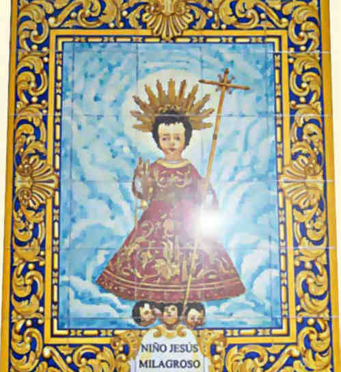 Hoy en plena octava de la Navidad en la festividad del Dulce Nombre de Jesús , en el convento de Espíritu Santo que en cuyo pórtico hay un Enígmatico azulejo mas allá de la fachada del mismo metiendose para la calle Dueñas tenemos este otro azulejo del Niño Jesús Milagroso que precisamente hoy sale de la clausura conventual , para estar en pública exposición a fieles y devotos , que les aseguro tiene anotado en su calendario secreto del corazón que saben los sevillanos que saben de Sevilla .-