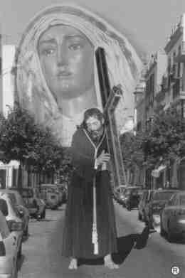 Nazareno y la Virgen de la O, entre coches y azoteas, no es afortunado. Nadie