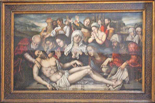 Pegado al anterior un retablo fechado en 1620 destacando la espectacular tabla de la escuela flamenca del Entierro de Cristo de 1525