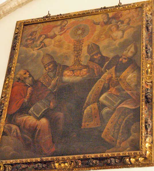 En la iglesia hay diferentes lienzos todos ellos del siglo XVIII, entre ellos esta Exaltación de la Eucaristía .