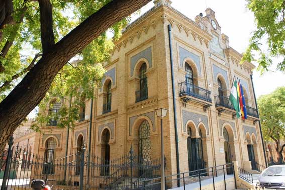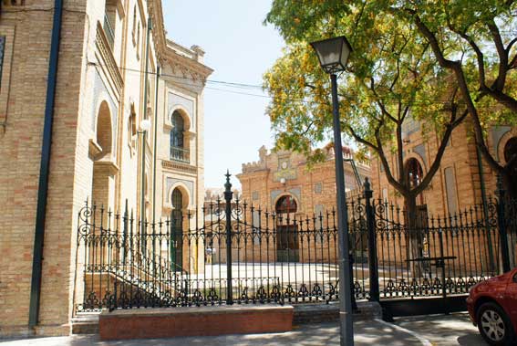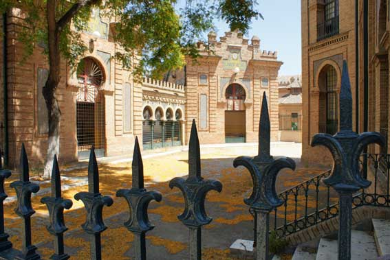 Inequívoco estilo neomudejar , de ladrillos vistos, ventanas de herradura ,azulejos y el remate del edificio como las característica almenas que lo rematan .-