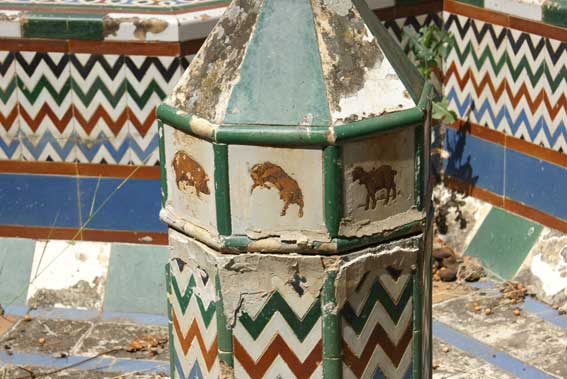 Curiosa esta fuente , en un estado ce conservación aceptable donde en azulejos están representado el tipo de ganado lanar, vacuno, caprino, porcino , que se sacrificaban en este recinto .-