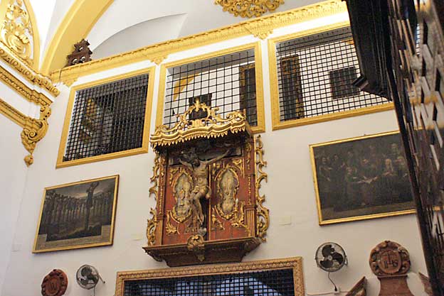 En el muro del coro vemos dos interesantes lienzos que representa los Mártires del Japón y las Adoración de los Pastores ambos del siglo XVII. Continuamos por el muro izquierdo