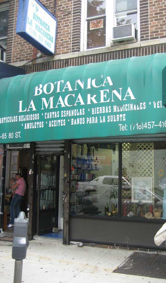 En el escaparate se ve una foto de la Esperanza Macarena , rodeada de velas y rosarios . Oigan ahí tiene el teléfono y para mas señal esta en la Avenida Roosevelt con la 80th St Jackson Heights,( vamos que no esta en una barriada ) para que me entienda algo así como los puestos de incienso de la calle Córdoba pero por lo neoyorquino .- Para que después digan que nosotros no exportamos nada igual les da un día por sacar pasos con puentes ( en este caso de Brooklyn ) , perros y soldados ( o marines ) sanedritas .- |