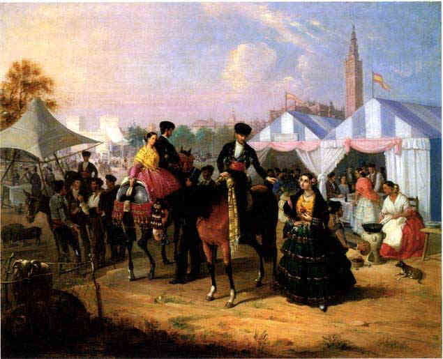 Hoy a base de mucho buscar y rebuscar , pareciendo increíble con un tema tan colorista como nuestra Feria de Abril haya una producción tan escasa y localizada prácticamente en la misma etapa romántica de la pintura sevillana.-