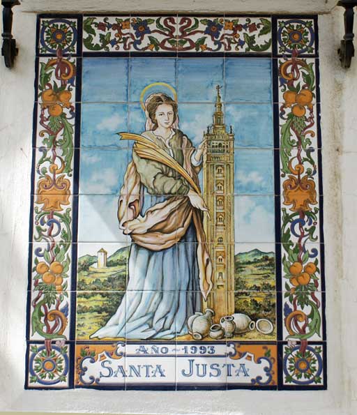 Por aquello de que todos los santos tienen octava , hoy les traigo los lienzos cerámicos dedicados a nuestras Santas Patronas , Santa Justa y Santa Rufina ( la pobre que siempre se dejan atrás lo de Santa ) .-