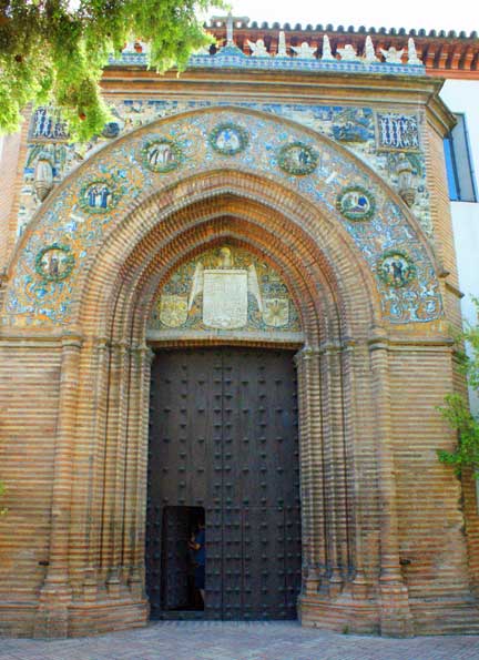 Portada de la Iglesia de no solo de estilo reyes Catolicos sino absolutamente contemponareo de ellos , obra del escultor Pedro millán y del ceramista Francisco Niculoso Pisamo fechada en 1504.-