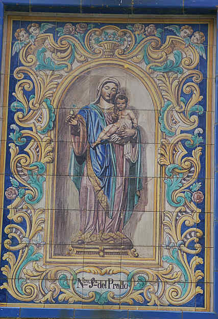 La puerta está presidida por espectacular azulejo de la Virgen del Prado