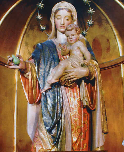La Virgen del Prado o de la Pera en el altar mayor de la parroquia .-