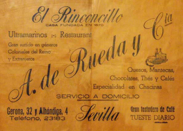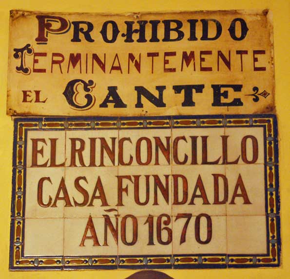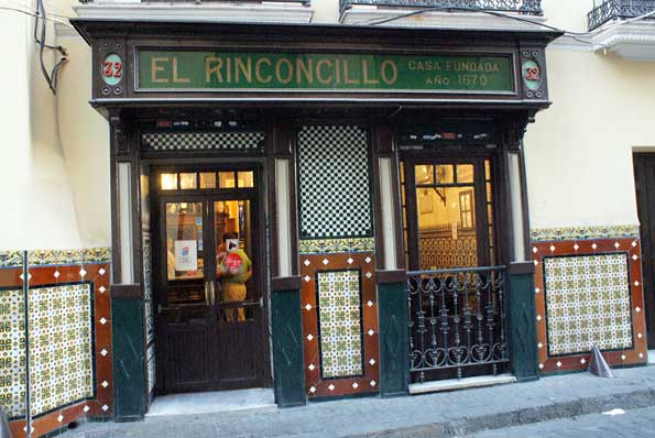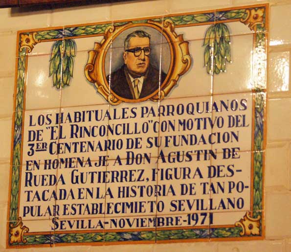 Eso de "Casa fundada en 1670" , no solo es verdad ,sino cierto. Según un articulo del profesor Klaus Wagner acreditaba la existencia de El Rinconcillo en el ultimo cuarto del siglo XVII. Logicamente el edificio que aquí ven no es el mismo , sino del siglo XIX , pero el negocio si . Es mas desde 1860 el negocio esta regentado por la misma familia montañesa ( como es habitual en las tiendas de toda la vida de Sevilla dedicada a ultramarinos y bares .-