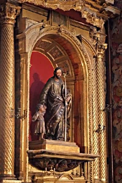 Retablo de 1612 de Diego López Bueno con San José y el Niño de mediados del siglo XVIII . El ventilador es de finales del siglo XX .-