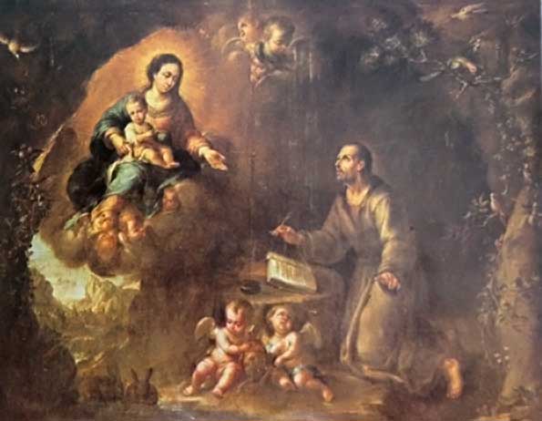 San Ignacio de Loyola en la cueva de Maresa obra de nuestro paisano Domingo Martínez en 1740 .-