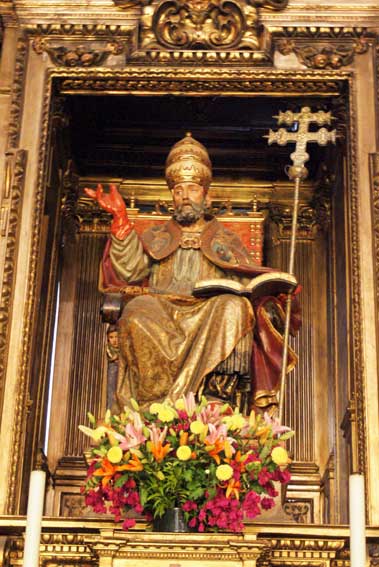 En la parte central del primer cuerpo tenemos a San Pedro Papa, obra que perteneció al retablo anterior obra nada mas y nada menos que de Andrés de Ocampo en 1591.-