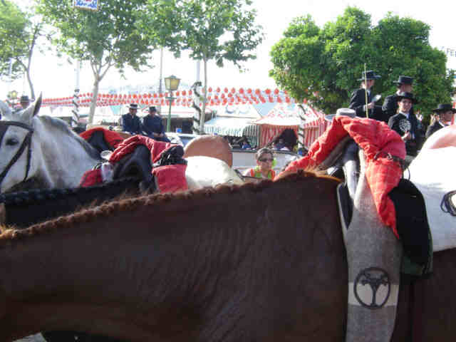 MARSELLES : Como suelen decir los profanos "ese trapo rojo reliado" atado sobre la montura es un marsellés .Según nuestro DRAE marsellés, sa.1. adj. Natural de Marsella. U. t. c. s. 2. adj. Perteneciente o relativo a esta ciudad de Francia. 3. m. Chaquetón de paño burdo, con adornos sobrepuestos de pana o pañete Efectivamente el marsellés , es como una chaquetilla corta ,algo mas larga sin llegar al tres cuarto, prenda de abrigo y cuyo forro esta profusamente bordado con dibujos semicirculares de hilo amarillo. Se usa sobre todo en el Rocío y las Ferias de frío , que las hay en la caída de la tarde , por caballistas o para dejarselo galantemente ( si es que queda galantería en este mundo ) a la señora o señorita que va a la grupa .- Es gracioso porque aquí se cumple una redundancia muy nuestra como , el cochino jabalí; el pájaro perdíz, es muy habitual decir el marsellés de paño, pues esta prenda siempre es de paño .-