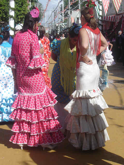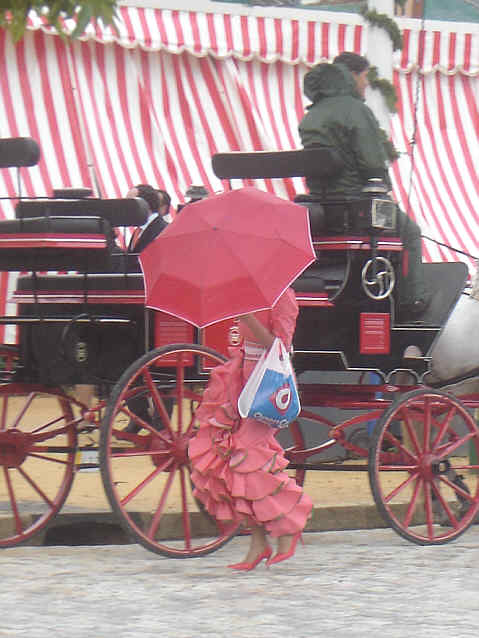 Estas señoritas tambien apuntan ideas que se puede ir perfectamente conjuntadas desde los tacones al paraguas , verde y en rojo . Señores de accesorio de pulseras, collares, peines, peinetas, por favor incluya en paraguas a juego , con colores de vestidos y adornos flamencos . No es una mala idea .-