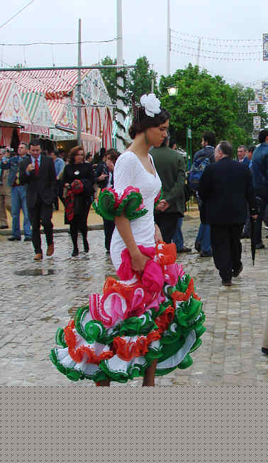Oigan y hablando de trajes de flamenca a poco que se detengan ustedes a mirar junto a los tradicionales lunares, las cintas coloras, los encajes , los mantoncillos se pudieron ver un autentico SIMOF de diseños por la calles de Real, de diseños mas o menos innovadores o rupturistas .De todo como en botica .-
