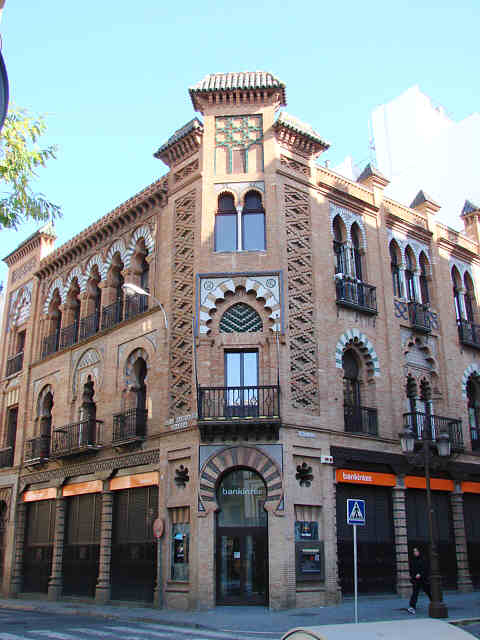 Es cierto Sevilla no solo tiene rincones sino también esquinas muy hermosas, algunas afortunadamente intactas y para darle un poco de vida al sector de lectores no capillitas , aquí les traigo otra que el impresionante edificio situado entre el cruce de calle de Martín Villa y Santa María de Gracia fue construido en 1907 para Manuel Nogueira. obra de prolifico Anibal González y que sin duda seria un ensayo para su Pabellón Mudejar de la Exposición del 1929 .-