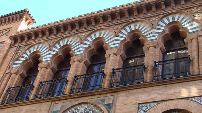 Como se puede apreciar es todo un catalogo de arquitectura de arcadas donde se pueden apreciar , de medio punto, lobulados, de herradura, con cerámica simulando dovelas, amen de los característicos paños de sebka en ladrillo visto y azulejeria .-![]()