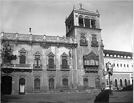 ARJONA 9 de Septiembre de 2009 Un servidor es muy pesado ( en todos los sentidos ) y siempre les he comentado que con la Sevilla que hemos destruido , se podria hacer otra, incluso mas bónita que la actual ( cosa que como la están dejando, tampoco sería muy dificil ) .- Lo que ven arriba y bajo este párrafo estaba en la Plaza del Duque y para que se me situen del tirón ,es donde esta hoy El Corte Ingles del Duque . Les cuento.- Alli estaba el inmeso palacio de los duques de Medina Sidonía ( los Guzmanes ) quedó destrozado tras la invasión napoleónica . Fue mayormente restaurado y rehabilitado a mediados del siglo XIX al ser adquirido por el marqués de Palomares el palacio que aqui ven .- En 1879 don Juan Antonio Fernandez de la Riva lo adquiere en subasta pública y monta en el los Almacenes del Duque , colocando sobre su techo una monumental montera que cubriera el magnífico patio reciclado en tienda de confección tejidos y pañeria , como se ven en la fosto siguientes en su lujoso interior .- A la muerte de aquel continuaron en el negocio sus hijos Manuel , licenciado en Derecho y Filosofia y Letras y Maria . Curiosamente todos los hijos de ambos hermanos nacieron y vivieron en el palacio en la amplia zona habilitada de residencia .- Desde 1960 se realizaron gestiones de su venta ante el Ayuntamiento, Gobierno Civil, Delegaciones Ministeriales, etc, pero ninguno de estos organismo públicos querina o podían hacer frente a la adquisición de este impresionanate inmueble .- En 1964 lo adquirio Jorge Bardeau y después paso a El Corte Ingles , siendo derrivado en 1965 .Si le interesa como acaba esta historía pulse EL CORTE INGLES DEL DUQUE QUE NUNCA EXISTIO