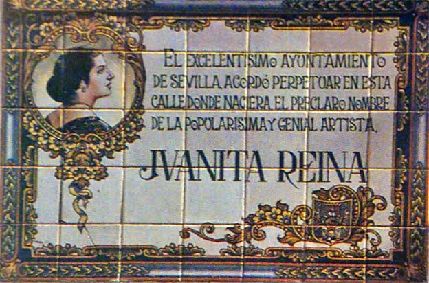 Tal día como hoy nacia en 1925 , en Sevilla, en el barrio de la Macarena , en la calle Parras , donde esta el azulejo de la foto superior Juana Reina Castrillo, Juanita Reina de nombre artístico. Sin duda hizo honor a su apellido , pues fue grande entre las grandes, pero lo mas dificil y en una ciudad tan complicada como Sevilla ( llena de gente que mas que graciosos , caen en gracia ) es que siempre gozó de la admiración, el respeto y el cariño de todos .-Inmortales canciones como : "Capote de grana y oro" , "Lola la Piconera", "Yo soy esa", "Callejuela sin salía" o "Francisco Alegre", sonaban en todas las radios de España ( cuando era España ) , cuando las radios eran mas grandes que los actuales televisores y sus letras eran cantadas de memoria sin karaoke , por las criadas que limpiaban las casas , con recogedor , estropajo y asperón ,muchisimo antes del invento de la fregona y el Mister Proper