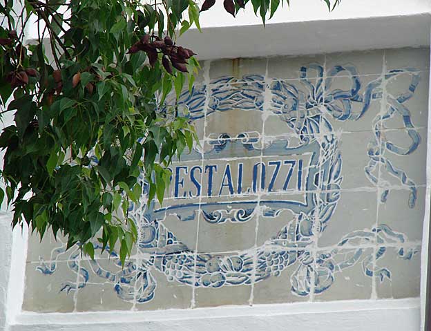 En la fachada principal se encuentran unos rótulos que hacen referencia a pedagogos y filósofos --Descartes, Montesinos, Aristóteles, Froebel, Fenelón, Pestalozzi, Spencer y Platón--.![]()