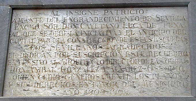 En 1906, el entonces alcalde, Cayetano Luca de Tena y Álvarez-Ossorio, decidió construir un colegio en Triana que fuese el regalo de Sevilla a los reyes de España, Alfonso XIII y Victoria Eugenia, con motivo de su boda, celebrada el 31 de mayo de 1906.Cayetano Luca de Tena costeó las obras y luego donó el edificio al Ayuntamiento. Y el proyecto fue realizado por su primo el arquitecto Aníbal González, que también donó su trabajo. Fue bendecido con la presencia de los reyes Alfonso XIII y María Victoria Eugenia, el día 24 de marzo de 1909, siendo ya alcalde de Sevilla José Ramos. La apertura oficial del centro escolar fue el día 4 de mayo de 1910.-Rebautizado José María del Campo ( que fuera director del centro ) durante la II República, como se sigue llamando el colegio en la actualidad . ( No me tiren de la lengua ) .-