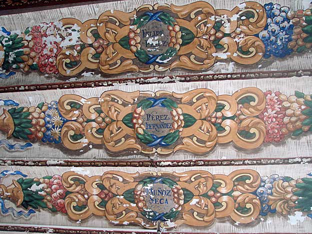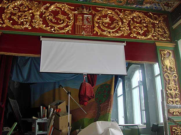 Una vez mas la genialidad de Anibal Gonzalez pues tal como diseño colegio ( estamos al principio del siglo XX ) marcó un antes y un después en la concepción de centros de enseñanzas que fue copiado en edificaciones posteriores . Las aulas de los parvulos en la planta baja para que no tuvieran el peligro de las escaleras ( eso hoy en el siglo XXI no se le mete en la cabeza a nuestra Consejeria de Educación ) grandes ventanales para luz natural y ventilación para cuando no esten los alumnos. Oficinas del centro junto al vestibulo. Cocinas, comedor, biblioteca, patio exterior y cubierto Un vestibulo amplio para que los padres puedan esperar a sus hijos a recogerlos . Saneamiento a la altura de los alumnos y en buen numero . Fue tan preclaro su diseño de espacios y servicios que se adelanto ocho años al Reglamento Nacional de Escuelas Graduadas aprobado en 1918Un salon de actos de 15 metros por 5 , del que pueden ver a continuación , como es el impresionante techo del mismo con frescos con los nombres de dramaturgos españoles![]()