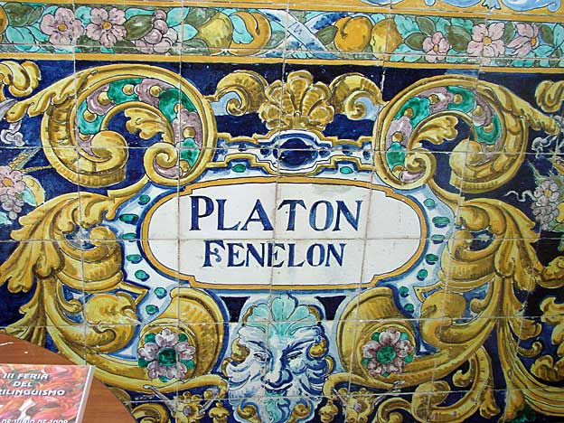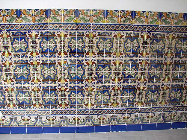 Aqui pueden ver paños de la azulejeria original del vestibulo y en las fotos siguientes, la ornamnetacion de estos impresionantes lienzos ceramicos, donde se repite el repertorio de filosofos y pedagogos en el despacho de dirección , que parece un anticipo de la Plaza de España.-Estuvo a punto de ser demolido en 1967 y felizmente restaurado entre 1978 y 1980 por los arquitectos Antonio Barrio Ferrer y Francisco Torres Martinez![]()