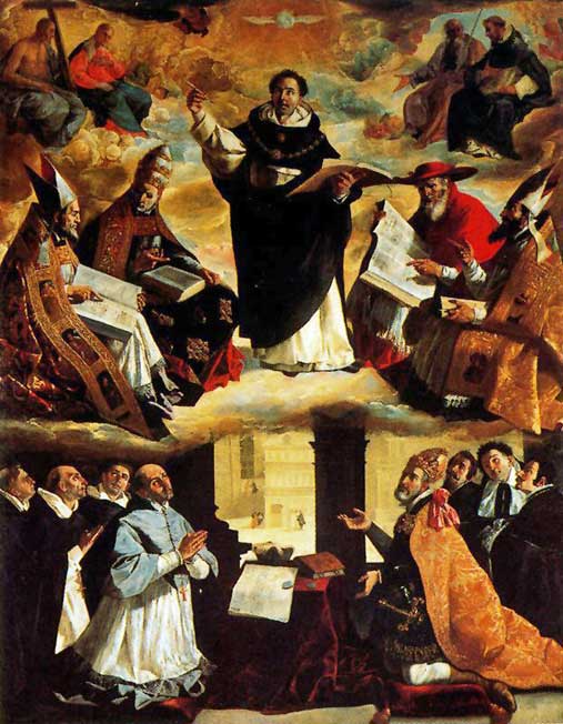 Tal día como ayer pero de 1664 fallecia Francisco de Zurbaran , al que le he dedicado varias paginas en esta web . Ademas de cartujos, tuvo una importante relación con la orden de los dominicos sevillanos , por el que fue contratato para exhornar sus entonces mas que importantes sedes en Sevilla.-El Triunfo de Santo Tomás Aquino , que vemos en la foto superior lo pinto Zurbaran en 1631, para el desaparecido Colegio de Santo Tomas, sito en la Plaza de Santo Tomas ( hoy Adolfo Rodriguez Jurado - frente al que fuera El Coliseo ) .Actualmente se halla en el Museo de Bellas Artes de Sevilla, cuadro que robó Soult afortunadamente recuperado .-
