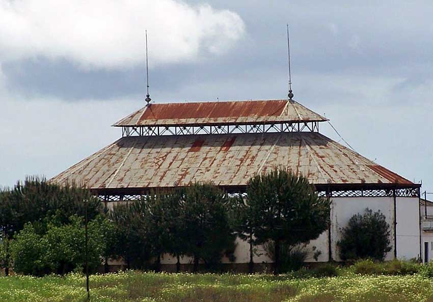 la silueta del lagar, estructura metálica en forma de carpa. El aspecto