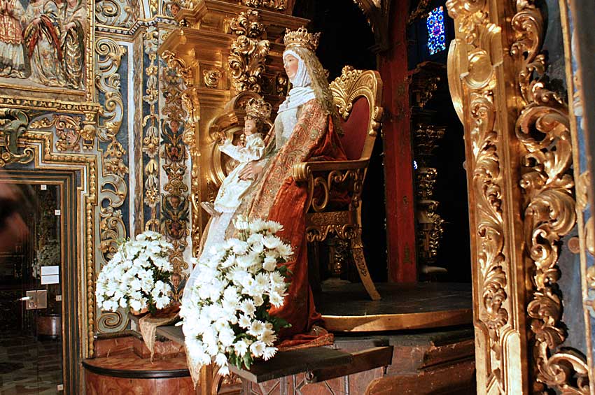 La Virgen sedente ( sentada ) de la ventana es la VIRGEN DE LAS AGUAS, de la que les hablaré un poco mas tarde, porque vamos a viajar tras este retablo, tras esta fachada .-
