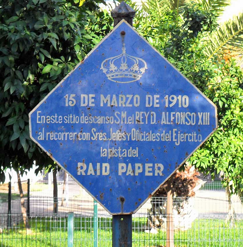 Según nos informa : " estan tomada en Plaza del árbol del Rey en el Parque Alcosa de Sevilla. Es una placa, que estaba al lado de una encina que fue talada por su mala ubicación y su mal estado de conservación, en el año 1973 ó 1974, en donde descansó nuestro Rey Don Alfonso XIII, un día de maniobras militares en 1910 ".- El Rey Alfondso XIII, frecuentó y pasó muchas temporadas en Sevilla , sobre todo a medida que se aproximaba la Exposición IberoAmericana de 1929 , donde se cuentas muchas anécdotas. Una de ellas, donde al parecer el Rey le gustaba de salir de incógnito y en solitario, por nuestra ciudad . Una noche se perdió entre sus callejuelas y haciendose pasar por un turista , le preguntó a un viadante como llegar a los Reales Alcazares donde tenía, logicamente fijada su residencia . El solicitó sevillano, que no lo reconoció ( en una época que no había ni televisión, ni Hola, ni internet ) no solo le indicó el camino, sino que lo acompañó para que no se perdiera y el Rey sorprendido por tanta amabilidad, al llegar a la puerta le dijo identificandose : "Buen hombre muchas gracias y aquí tiene usted su casa " .-