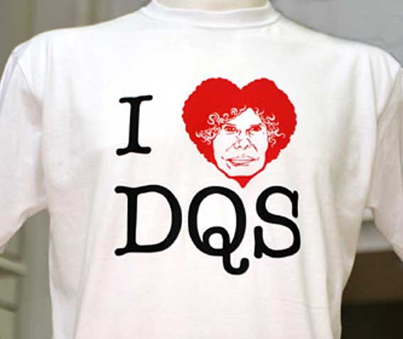 Todo eso ( amen de Historia de Ex-paña ) es una cosa y otra lo que va a ocurrir el próximo 5 de Octubre en nuestra ciudad , telón de fondo casi obligado en la prensa cardiaca y de la entrepierna a la que se dedican rios de tinta, kilómetros de papel couche e interminables horas televisiva , con los debates de los tertulianos/as de los mas sesudos , en coloquios que recuerda a gallineros donde se criaban los recordados pollos de Simago . - Pero mire usted por donde, como dice la letra de la ruma "y hubo alguien" , que se le ha ocurrido estos inventos , del souvenirs , del merchandise, que esta la cosa muy chunga, que esta la cosa muy mala, aqui el que no corre vuela y se le ha ocurrido la idea de la camiseta y de la chapa del : "I ♥ DQS", donde se inserta el rostro de la actual duquesa de Alba con su peculiar peinado, dentro de un corazón .- Esto tiene un problema gordo, que no es la boda de Lady Di, ni de nuestra Letizia ( saltando las abismales distancias ), no no nos engañemos; las varias veces excma sra Cayetana , no es precisamente Kate Middleton, es decir aqui sabemos de que va el paño y comulgamos con piedras de molino, de pretender hacer normal, lo anormal; pero nuestros turista , se pueden quedar un poco descolocados, al no saber de que va esto, que realmente resulta complicado asociar con algo que recuerde a una boda real o no real, pues todo resulta bastante irreal , la verdad sea dicha.- No estaría de más, que el inventor de este invento, el hombre quiere sacar tajada del evento ( palabra muy facebusera ), vestido del envoltorio de "recuerdo-homenaje" ( habria que plantearse, si esto es mas bien para olvidar a toda velocidad ), deberia de pegar una pegatinita explicativa, por detrás de que va esta película, a modo de manual de instrucciones o prospecto, porque yo que quiere que les diga a mi eso del DQS, me suena mas a empresa de auditoria .-