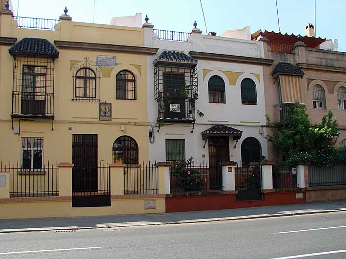 Situense en la Avenida de Ramón y Cajal en dirección de Viapol al Matadero y en su acera de la izquierda, hay tres grupos de viviendas proyectados dentro de este esquema arquitéctonico y socioeconómico .- En la primera foto vemos el azulejo situado en una impresionante manzana que forma la Casas Baratas del Patronato Municipal fechado en 1922 , un tremendo edificio entre castilletes y profusión de ladrillos vistos obra del insigne Anibal Gonzalez .- Si pasamos a la siguiente