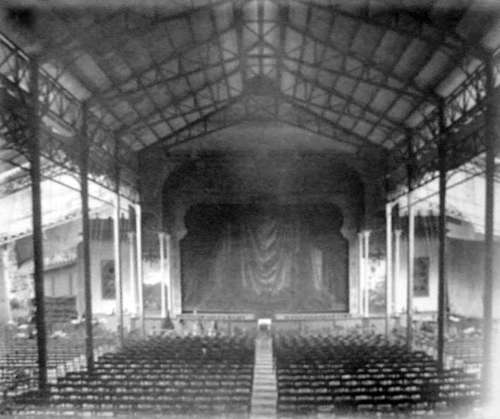 | JULIO DOMINGUEZ ARJONA 15 de Octubre de 2011 Esta tremenda estructura metálica que aqui ven, corresponde a lo que fue el Teatro, Circo y Cine Eslava, situado en los Jardines de Eslava , para que se situen cuando se clausuró y demolió en su solar se constryo, el actualmente cerrado Hotel Alfonso XIII .- El local fue contruido por Antonio Capó en 1887 , que hacía originariamnte las funciones de teatro de verano sustituyendo a un homónimo anterior veinte años antes . La estructura metálica de hierro corresponde a 1900 , pues a veces el tiempo era traicionero y las funciones se teniína que suspender por la inesperada lluvias veraniegas .- Contaba con escenario y patio de butacas moviles para adaptarse a la necesidades del espéctaculo . Un año antes 1899 sufrió obras para adaptarse a espéctaculos circenses que hacia la delicias de la chiquilleria .- Además, de teatro y circo , ofrecia actuaciones de ópera al aire libre y diferentes actuaciones musicales . El Eslava, junto al Teatro Portela, situado en el Padro de San Sebastian , fueron los pioneros de los practicamente desaparecidos cines de verano en Sevilla, ( por la peculiaridad de nuestra clima y nuestra temperaturas mínimas nocturnas que hacen mas daño que las máximas ) al ofrecer el novedoso cinematógrafo al aire libre pero con techo. Curiosamente ya en esa época se ofrecian bebida refrescante y abanicos para las señoras a 50 cts .- Sus propietario fueron Gregorio Palomar y Gregorio