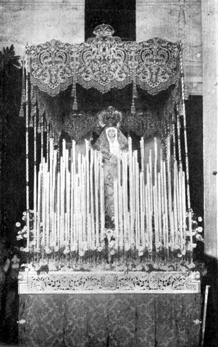 superior vemos que la Virgen se cubre ya con el fastuoso palio bordado por
