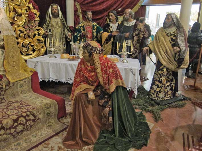 Entre las de Lastrucci se encuentran los cinco apóstoles del misterio del Beso de Judas, otros tres del paso del Prendimiento de los Panaderos y uno de los sayones que preparan la cruz en el del Señor de las Penas, de la Estrella, todos ellos con ropajes distintos a los habituales.