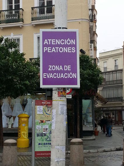 Como el español es un idioma muy complicado ( que me lo digan a mi y a mis detrcatores ), a veces resulta hasta traicionero, uno se va al DRAE y se encuentra con esto : evacuación.(Del lat. evacuatĭo, -ōnis). 1. f. Acción y efecto de evacuar. evacuar.(Del lat. evacuāre). 1. tr. Desocupar algo. 2. tr. Desalojar a los habitantes de un lugar para evitarles algún daño. 3. tr. Dicho de un ser orgánico: Expeler excrementos u otras secreciones. 4. tr. Desempeñar un encargo, informe o cosa semejante. A falta de pasos, a falta de aglomerariones cofradieras, nos encontramos con una aglomeración de personas que quieran estar aglomeradas ingiriendo ingestas cantidades de alcohol en sus diferentes graduaciones, que lleva mas tarde o mas temprano a irremediables necesidades fisiológicas de "evacuación", vease la tercera acepción : "3. tr. Dicho de un ser orgánico: Expeler excrementos u otras secreciones." .- Es decir, que como no quiten rapidamente la cucaña evacuatoria , mas de un guarro él , guarra ella , en lugar de miccionar por diferentes puntos de la plaza ( lo que le da un característico olor por las mañana, a este lugar, en una mezcolanza con el zotal - lo que recuerda bastante al paseo de caballos de la Feria - ) , con toda las razón del mundo tanto los jovenes ( y no tan jovenes ) ellos y ellas, pueden acabar todos meandose ( excrementos y otras secreciones ) por las patas abajo en este indicando punto, sin que nadie le pueda llamar la atención en una señalizada " Zona de Evacuación " .- |