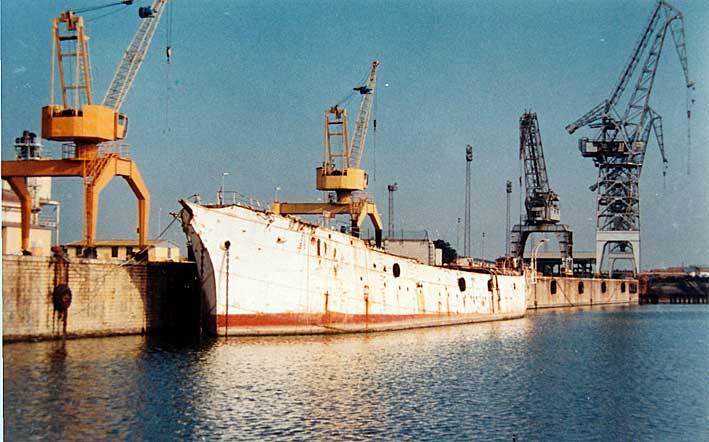 1993 se lo llevan a remolque de Sevilla a Greenock, donde fue recibido con