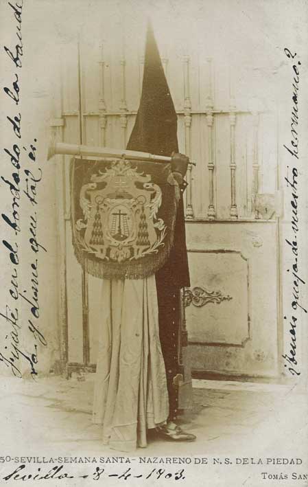 a la foto en 1918 los nazarenos llevan túnica de capa de color negro
