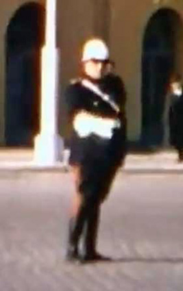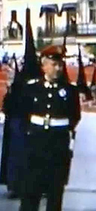 de la época , con sus típicos correajes blancos , gorra de