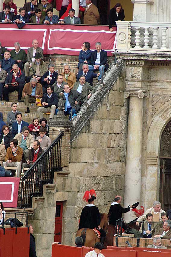 La Plaza de Toros de Sevilla la Maestranza , mantiene muhcos ritos y curiosidades , como el caso de las dobles mulillas . Hoy les traigo otro en el que deberian de reparar cuando vayan a la plaza .-