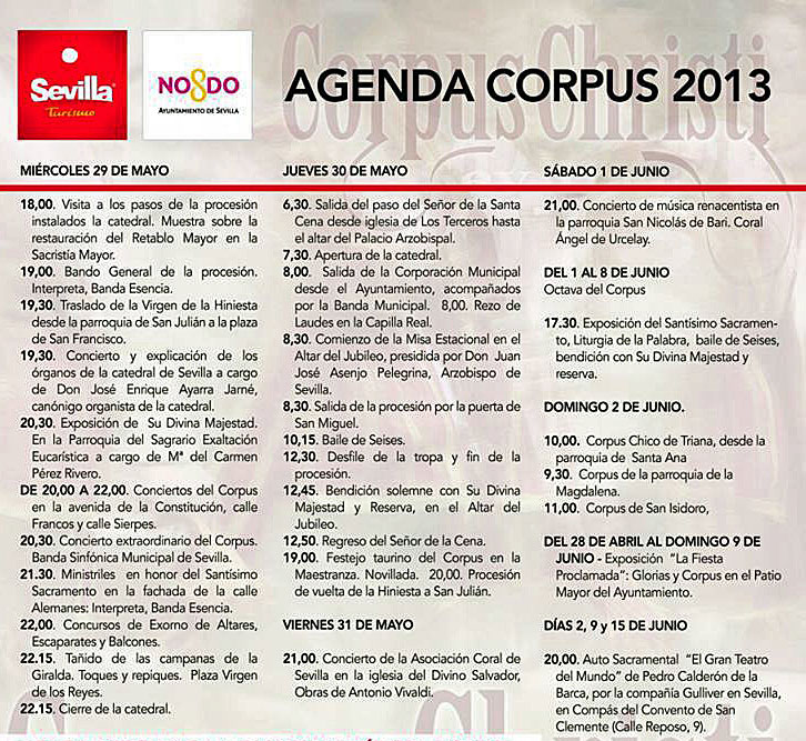 CALENDARIO PARA EL CORPUS DE SEVILLA 2013 . DÍAS, HORAS ACTOS |