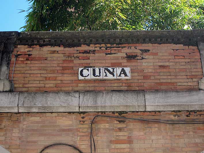 Frente por frente, en esa misma calle en otro edificio no menos importante como la casa palacio de los marqueses de la Motilla , en la acera de los impares se puede leer CUNA . Tranquilidad les develo este misterio .-
