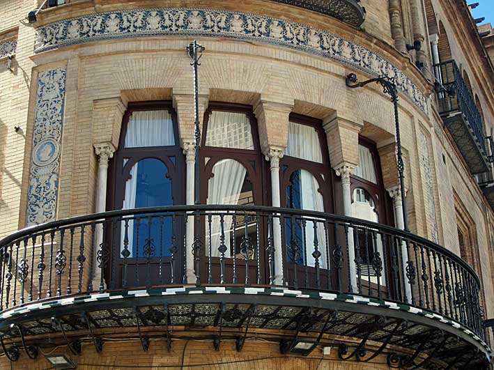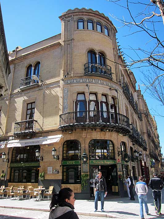 A lo que íbamos, en este esquina vemos el impresionante edificio de la calle Villasis num 1 que se construye entre los años 1914 y 1915 . Obra del célebre arquitecto sevillano Aníbal González en 1914, destinado a una construcción que combina el uso comercial en su parte inferior -planta baja y entresuelo-, con el de carácter residencial -en las dos plantas superiores-.