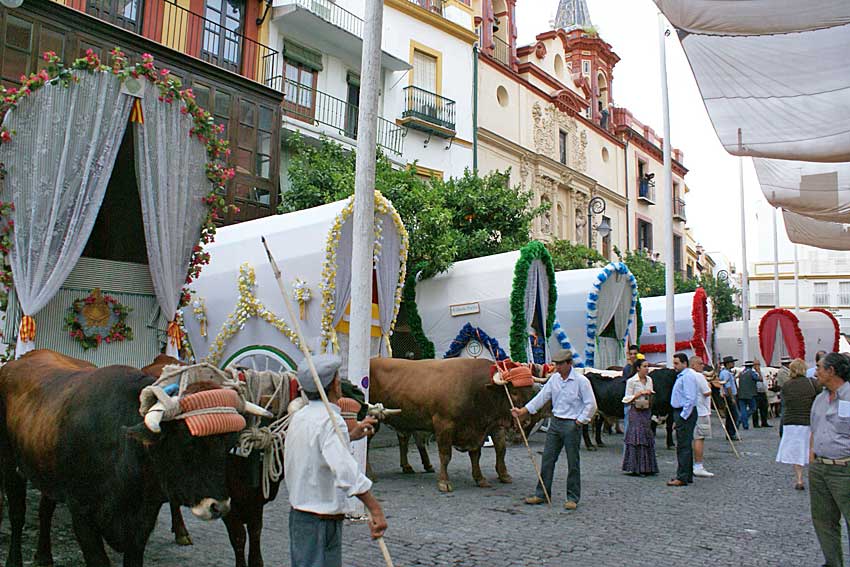 preparaba las carretas de Sevilla , de donde salian y a donde regresaban