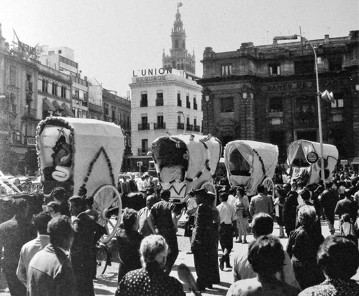 25 de mayo de 1965 Las carretas de la Hermandad de Sevilla por la Plaza San