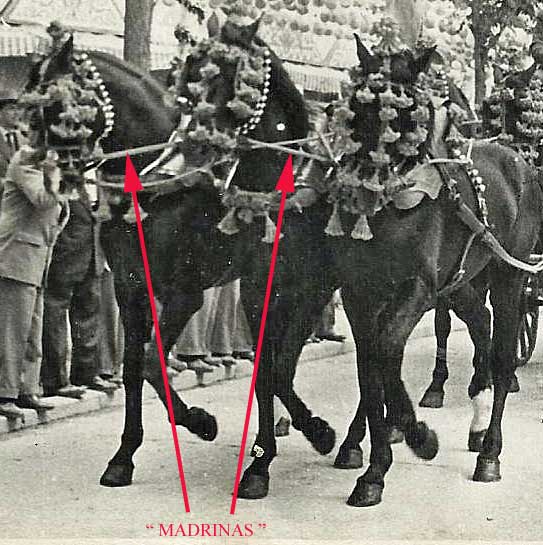 caballos en paralelo o iban a la "serretas" ( en la "nariz" del caballo )